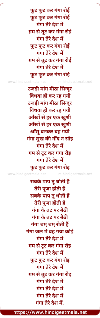 Lyrics of Ganga Tere Desh Me