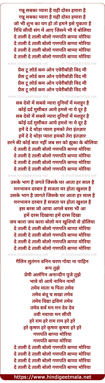 Lyrics of Gannu Sabka Pyara Hai Yahi Dost Humara Hai - गन्नू सबका प्यारा है यही दोस्त हमारा है