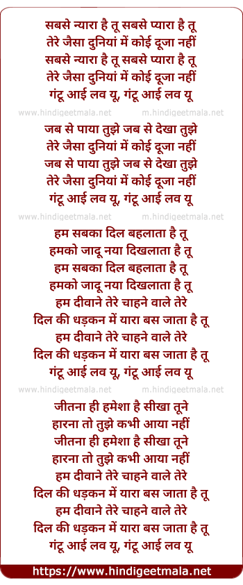 Lyrics of Gantoo I Love U - गंटू आई लव यू