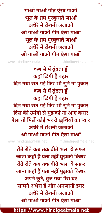 Lyrics of Gao Gao Geet Aisa Gao - गाओं गाओं गीत ऐसा गाओं