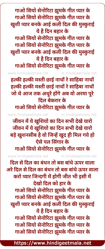 Lyrics of Gao Senorita Geet Pyar Ke - गाओ सेनोरिटा गीत प्यार के
