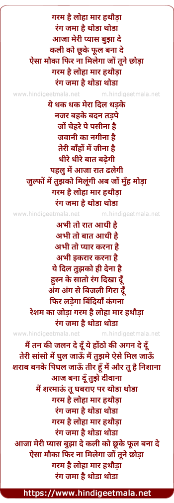 Lyrics of Garam Hai Loha Mar Hathoda - गरम है लोहा मार हथौड़ा
