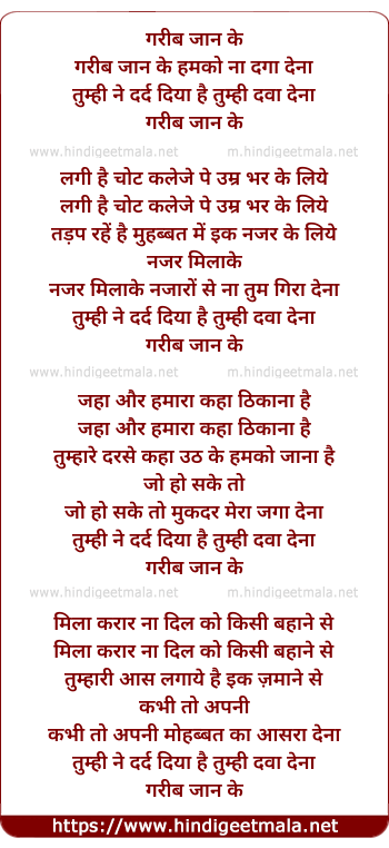 Lyrics of Garib Jan Key Hamko Naa Tum Daga Dena - गरीब जान के हमको ना दगा देना