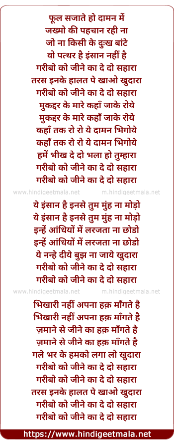 Lyrics of Garibo Ko Jine Ka De Do Sahara - गरीबो को जीने का दे दो सहारा