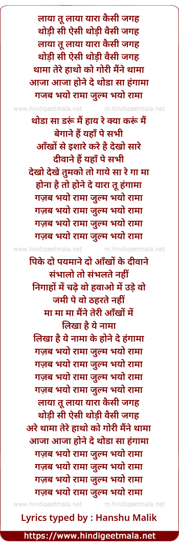 Lyrics of Gazab (Club Mix) - लाया तू लाया यारा कैसी जगह