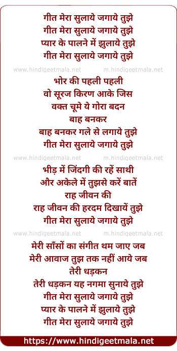 Lyrics of Geet Mera Sulaye Jagaye Tujhe - गीत मेरा सुलाये जगाये तुझे