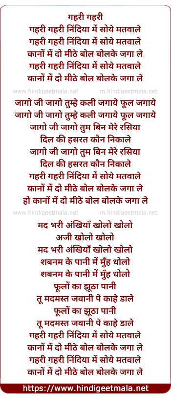 Lyrics of Gehri Gehri Nindiya Me - गहरी गहरी निंदिया में