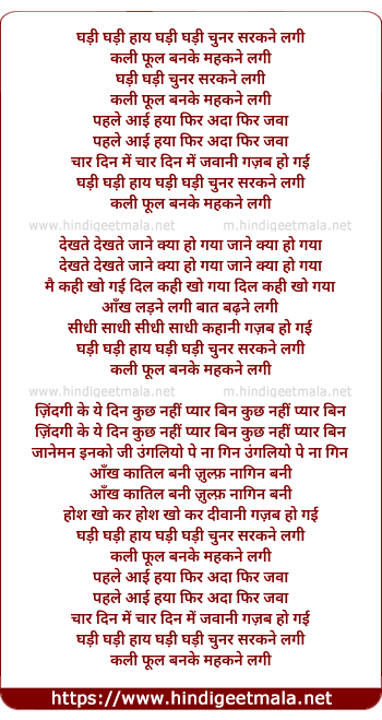 Lyrics of Ghadi Ghadi Chunar Sarakne Lagi - घड़ी घड़ी चुनर सरकने लगी