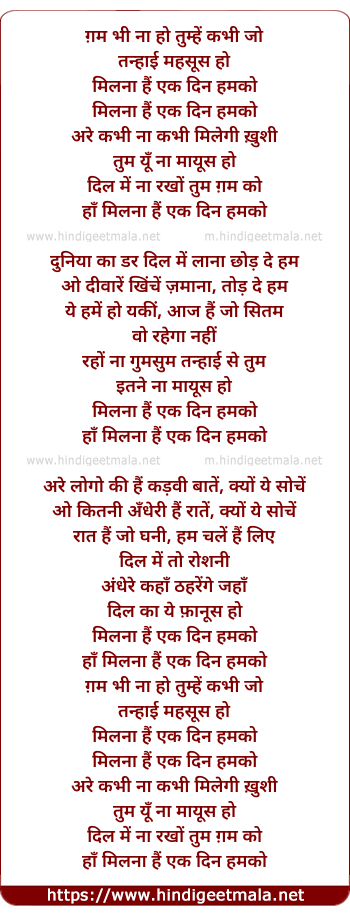 Lyrics of Gham Bhi Na Ho - ग़म भी ना हो तुम्हें कभी जो
