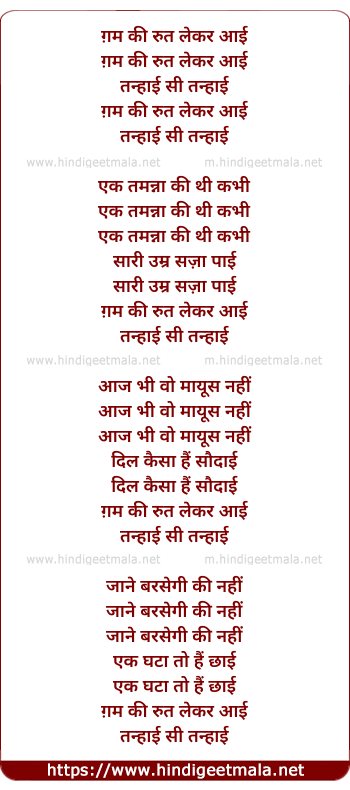 Lyrics of Gham Ki Rut Lekar Aayi - ग़म की रुत लेकर आई