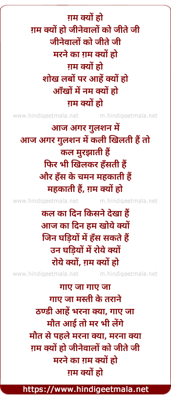 Lyrics of Gham Kyo Ho Jinewalo Ko - ग़म क्यों हो जीनेवालों को