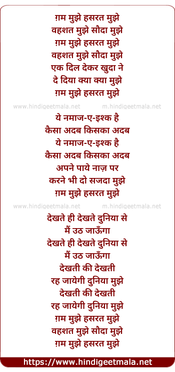 Lyrics of Gham Mujhe Hasrat Mujhe - ग़म मुझे हसरत मुझे