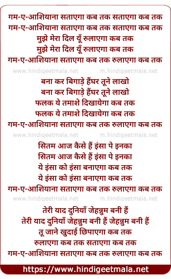 Lyrics of Gam-E-Aashiyana Satayega Kab Tak - गम-ए-आशियाना सताएगा कब तक