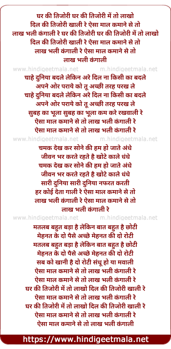 lakh bhali kangali re ghar ki tijori me to lakho