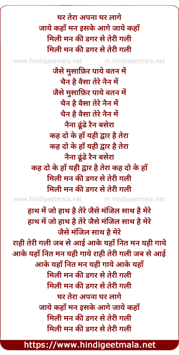 Lyrics of Ghar Tera Apna Ghar Laage - घर तेरा अपना घर लागे