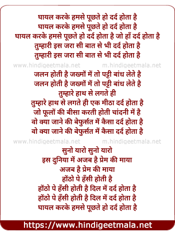 Lyrics of Ghayal Karke Humse Puchti Ho - घायल करके हमसे पूछते हो दर्द होता है