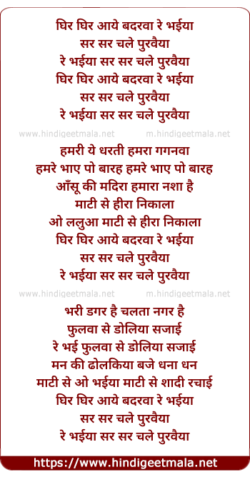 Lyrics of Ghir Ghir Aaye Badarwa O Bhaiya - घिर घिर आये बदरवा रे भईया