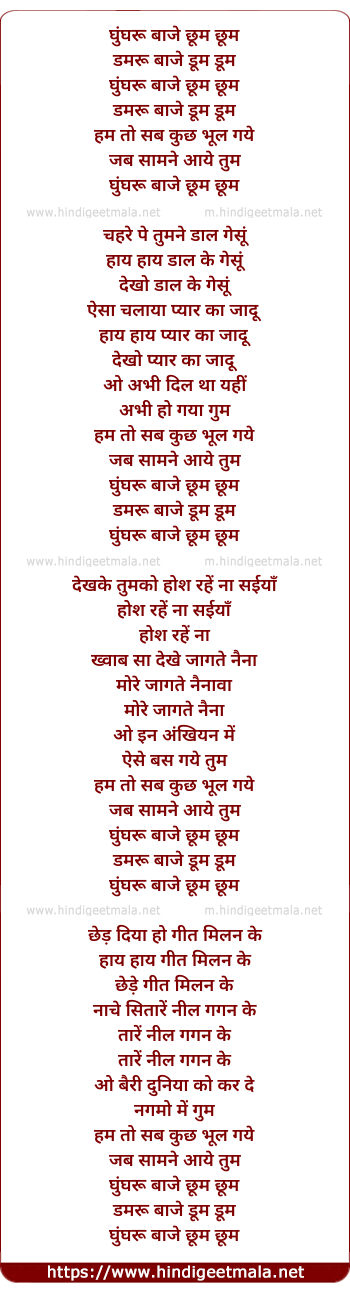 Lyrics of Ghungaru Baje Chhum Chhum - घुंघरू बाजे छूम छूम