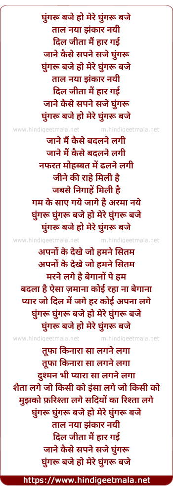 Lyrics of Ghungharu Baje Ho Mere - घुंगरू बजे हो मेरे
