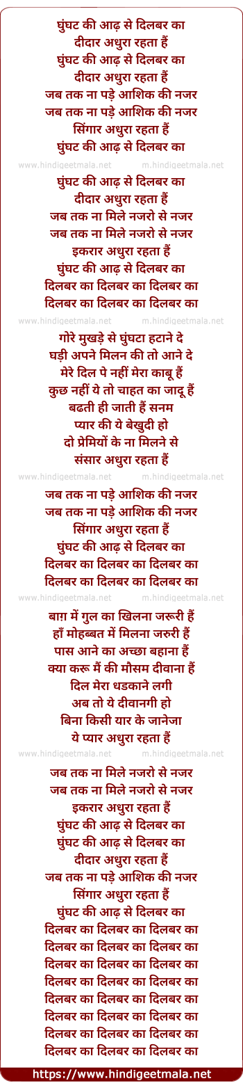 Lyrics of Ghunghat Ki Aadh Se Dilbar Ka Didar Adhura - घुंघट की आढ़ से दिलबर का