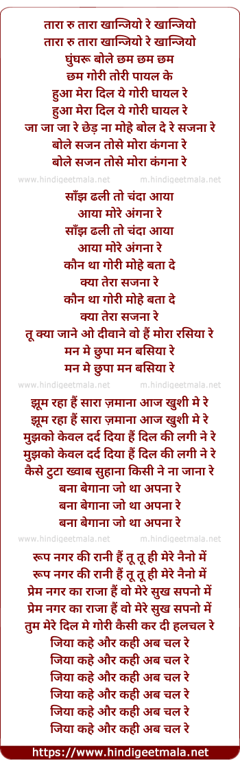 Lyrics of Ghungru Bole Cham Cham Cham - घुंघरू बोले छम छम छम