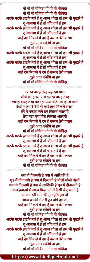 Lyrics of Go Go Govinda (Reprise) - गो गो गो गोविंदा गो गो गो गोविंदा