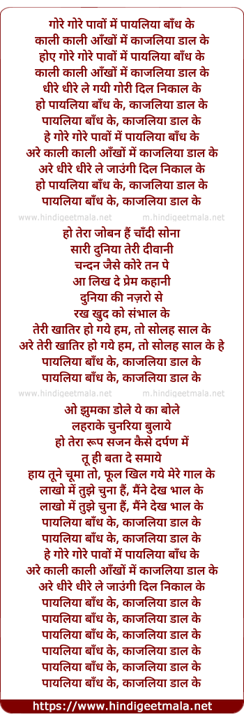 hoy gore gore pawo me payaliya baandh ke