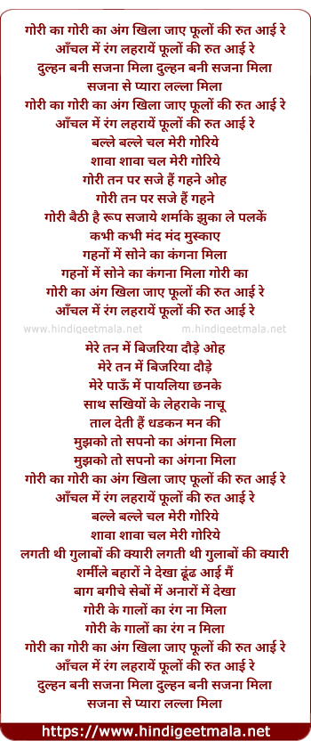gori ka gori ka ang khila jaye phulo ki rut ayi re