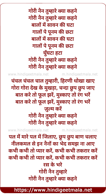 Lyrics of Gori Nain Tumhare Kya Kehne - गोरी नैन तुम्हारे क्या कहने