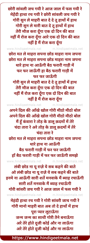 gori sanwri jach gayi re aaj jaal main phash gayi re