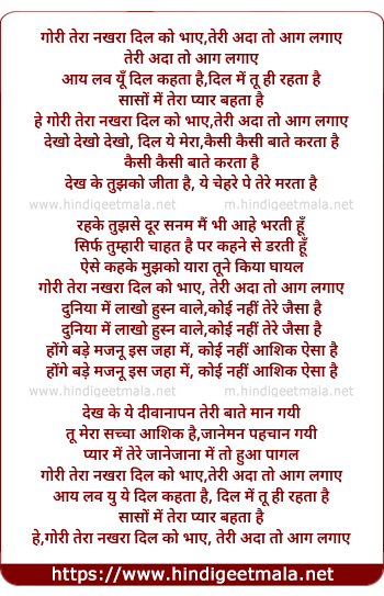 Lyrics of Gori Tera Nakhra Dil Ko Bhaye - गोरी तेरा नखरा दिल को भाए