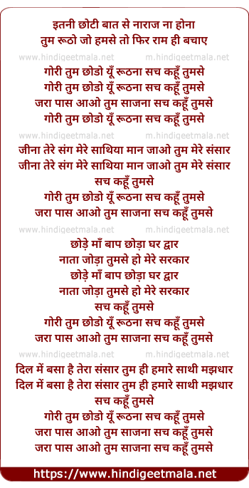 Lyrics of Gori Tum Chhodo Yu Ruthna - गोरी तुम छोड़ो यूँ रूठना