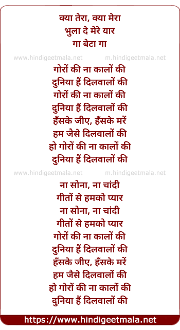 Lyrics of Goro Kee Na Kalo Kee (Sad) - क्या तेरा, क्या मेरा