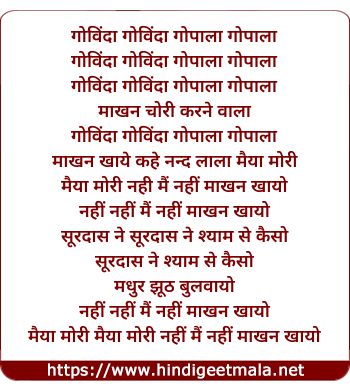 Lyrics of Govinda Govinda Gopala Gopala - गोविंदा गोविंदा गोपाला गोपाला