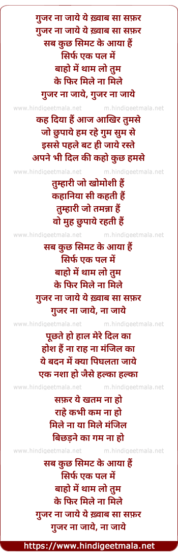 Lyrics of Gujar Na Jaye Ye Khwaab Sa Safar (Solo) - गुजर ना जाये ये ख़्वाब सा सफ़र