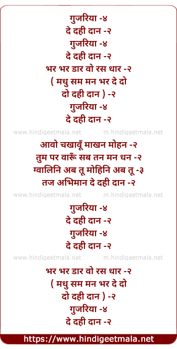 Lyrics of Gujariyaa, De Dahi Daan - गुजरिया -४