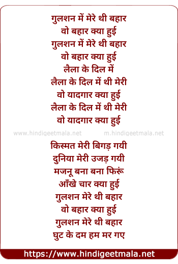 Lyrics of Gulshan Me Mere Thi Bahaar - गुलशन में मेरे थी बहार
