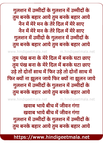 Lyrics of Gulshan Me Ummido Ke Tum