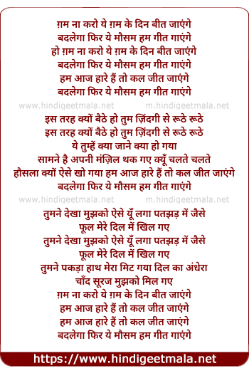 Lyrics of Gum Naa Karo Ye Gum Ke Din Bet Jayenge - ग़म ना करो ये ग़म के दिन बीत जाएंगे