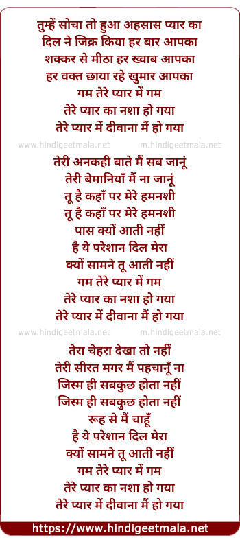 Lyrics of Gum Tere Pyar Me - गम तेरे प्यार में