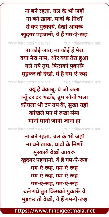 Lyrics of Gume Rooh - ना बने रहता, चल के भी जहाँ