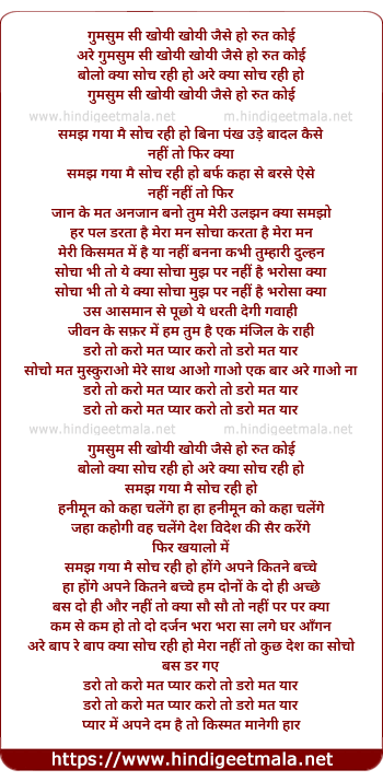 Lyrics of Gumsum Si Khoyi Khoyi Jaise Ho Rut Koi - गुमसुम सी खोयी खोयी जैसे हो रुत कोई