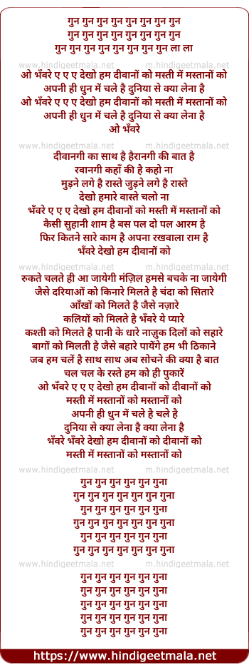 Lyrics of Gun Gun Gun Gun, O Bhanvre Dekho - गुन गुन गुन गुन ,ओ भँवरे देखो