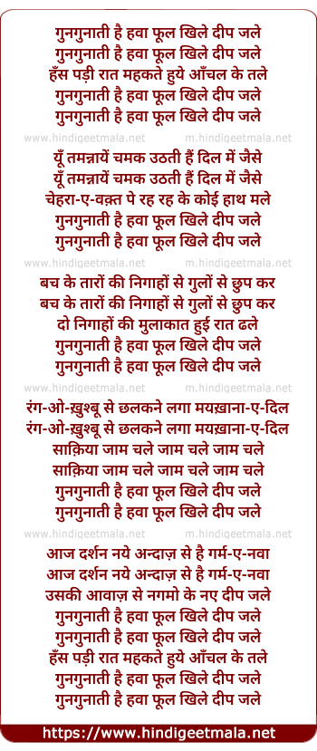 Lyrics of Gun-Gunatee Hai Hawa Phul Khile Dip Jale - गुनगुनाती है हवा फूल खिले दीप जले