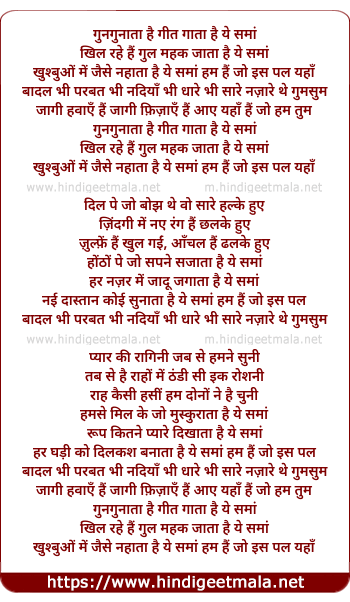 Lyrics of Gunagunaataa Hai Git Gaataa Hai Ye Samaan - गुनगुनाता है गीत गाता है ये समां