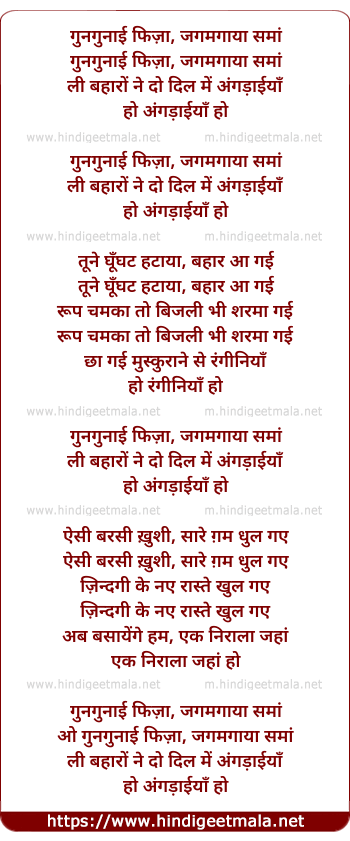 Lyrics of Gungunayi Fiza Jagmagaya Sama - गुनगुनाई फिज़ा, जगमगाया समां