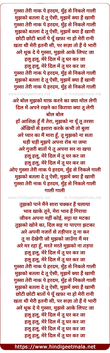 Lyrics of Gussa Tere Nak Pe Hardum (Hallu Hallu) - गुस्सा तेरी नाक पे हरदम, मुँह से निकले गाली