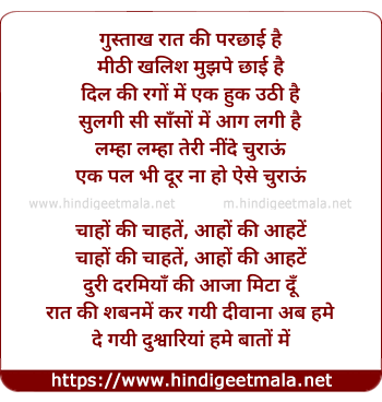Lyrics of Gustakh Raat - गुस्ताख रात