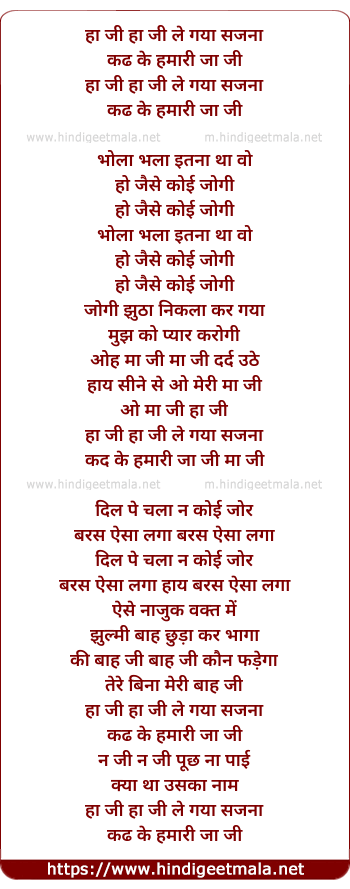 Lyrics of Ha Jee Le Gaya Sajna