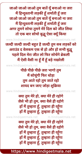 Lyrics of Ha Mai Tumhara Hu (Remix) - जाओ जाओ जाओ तुम बातें यूँ बनाओ ना जरा